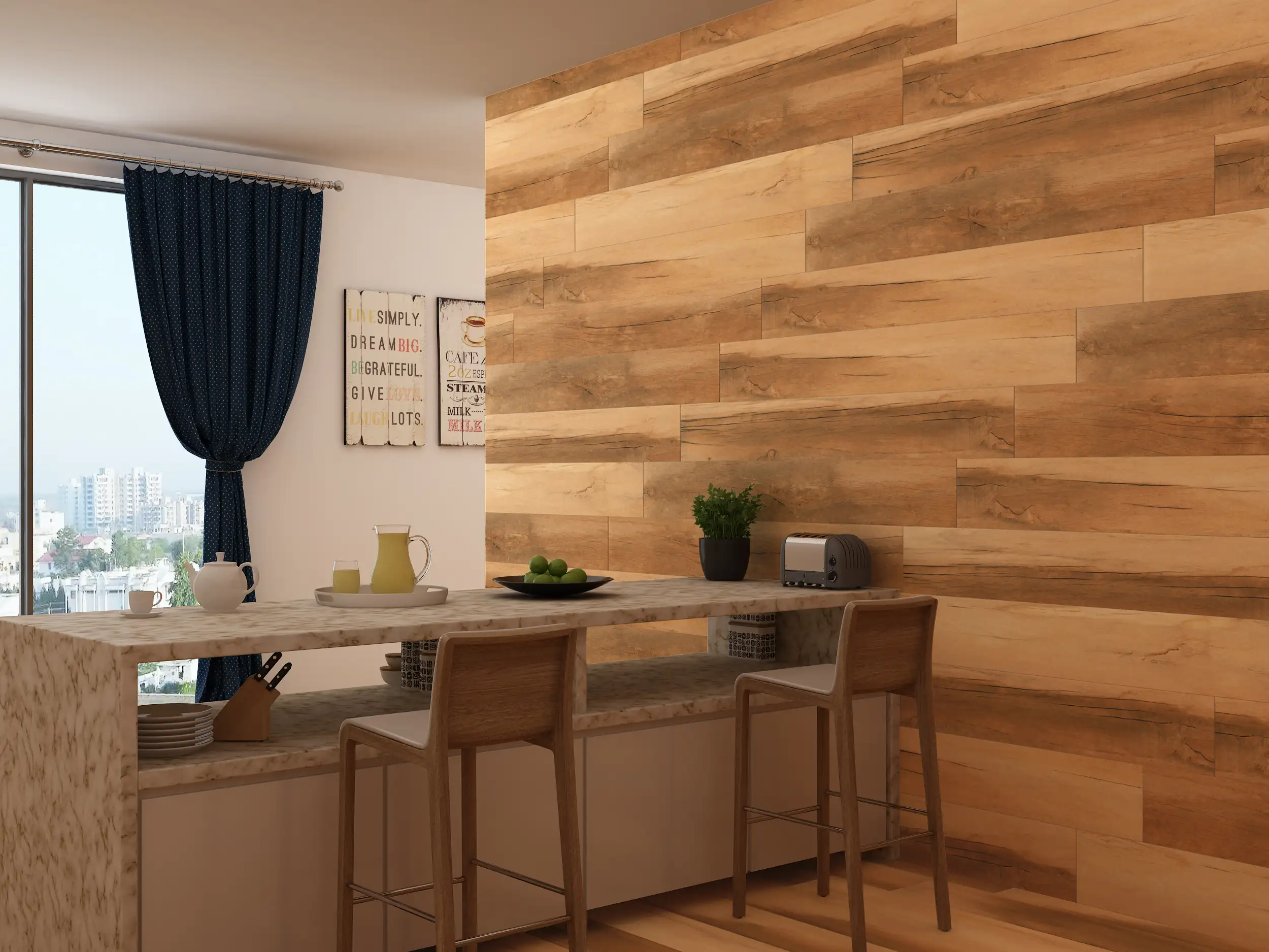 • Stylish Living Rooms: Use textured tiles for feature walls that add depth and character to living areas.